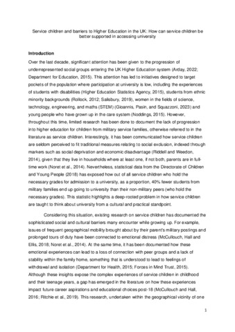 Service children and barriers to higher education in the United Kingdom: How can service children be better supported in accessing university?