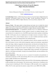 Critical Success Factors of Lean Six Sigma in HEIs - OPEX in HE Conference Galway Irland Sept 2024.pdf - Accepted Version | Preview |