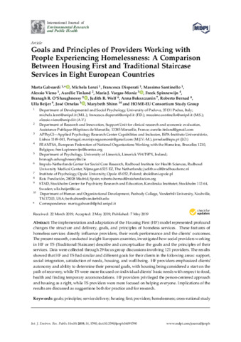 Goals and Principles of Providers Working with People Experiencing Homelessness: A Comparison Between Housing First and Traditional Staircase Services in Eight European Countries.