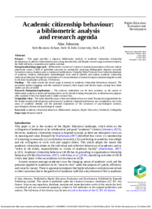 Purpose – This paper provides a rigorous bibliometric analysis of academic citizenship scholarship development. Academic citizenship has seen a long-term decline, and despite a recent surge in research interest, the field still lacks comprehensive studies and data.