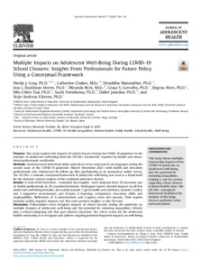 Multiple Impacts on Adolescent Well-Being During COVID-19 School Closures: Insights From Professionals for Future Policy Using a Conceptual Framework.