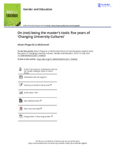 Phipps, Alison and McDonnell, Liz (2021) On (not) being the master’s tools: five years of ‘Changing University Cultures’. Gender and Education, 34 (5). pp. 512-528.