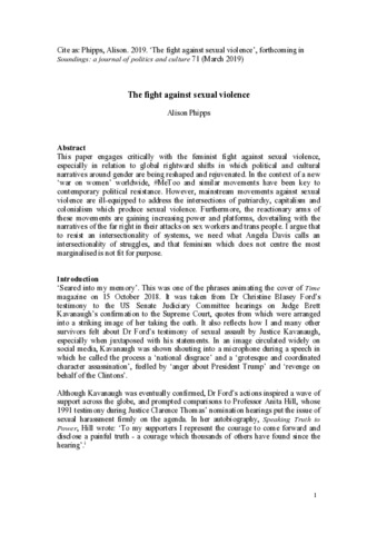 Phipps, Alison (2019) The Fight Against Sexual Violence. Soundings, 71 (71). pp. 62-74.
