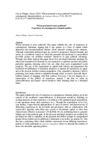 Phipps, Alison (2016) Whose personal is more political? Experience in contemporary feminist politics. Feminist Theory, 17 (3). pp. 303-321.