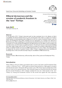 In the aftermath of 9/11, Türkiye’s democratic path has been questioned due to the debates on Islam’s compatibility with Western liberal democracy. The central puzzle of this article is to analyse how Türkiye’s initial trajectory of democratization took an illiberal turn with the erosion of academic freedom under the Justice and Development Party (AKP), deviating from the expectations of a transition from electoral to liberal democracy. After establishing the conceptual and theoretical framework in the first part, the next one summarizes the Turkish paradoxical engagement with liberal democracy and military coups throughout the twentieth century and their impact on academic freedom. The third part focuses on democratic backsliding and a silent regime change under the AKP rule. The last one analyses the symbiotic relationship between the attacks on academic freedom and ‘the rise of illiberal democracy’ in the ‘new’ Türkiye. The article concludes by arguing that the erosion of academic freedom reflects Türkiye’s deepening democratic backsliding and increasing culture of fear and self-censorship during the consolidation of illiberal democracy.