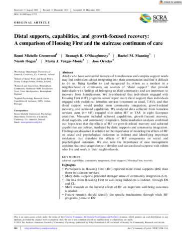 Distal supports, capabilities, and growth-focused recovery: A comparison of Housing First and the staircase continuum of care.