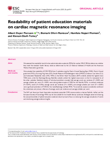 Readability of patient education materials on cardiac magnetic resonance imaging.