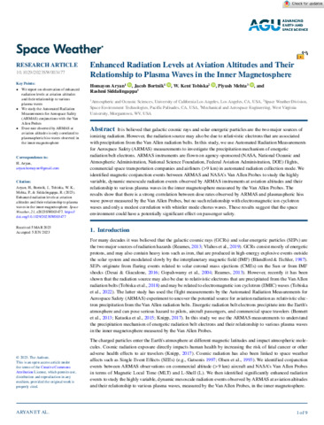 Space Weather - 2023 - Aryan - Enhanced Radiation Levels at Aviation Altitudes and Their Relationship to Plasma Waves in.pdf - Published Version Available under License Creative Commons Attribution. | Preview |