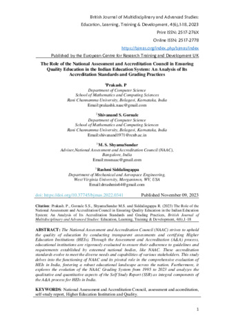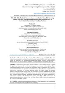 The Role of the National Assessment and Accreditation Council in Ensuring Quality Education in the Indian Education System: An Analysis of Its Accreditation Standards and Grading Practices.