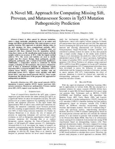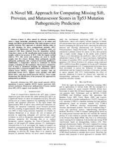 A Novel ML Approach for Computing Missing Sift, Provean, and Mutassessor Scores in Tp53 Mutation Pathogenicity Prediction.