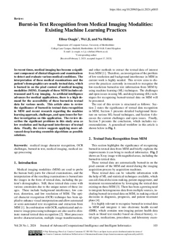 Burnt-in Text Recognition from Medical Imaging Modalities: Existing Machine Learning Practices.