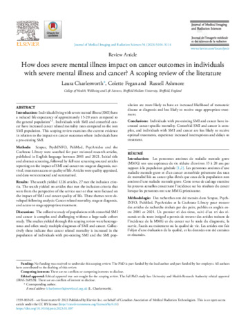 Individuals with pre-existing SMI and cancer have increased cancer specific mortality. Comorbid SMI and cancer is complex, and individuals with SMI and cancer are less likely to receive optimal treatments, experience increased interruptions and delays to treatment.