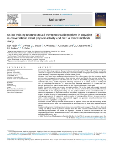 Online training resources to aid therapeutic radiographers in engaging in conversations about physical activity and diet: A mixed methods study.