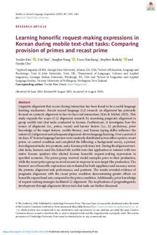 Learning Honorific Request-Making Expressions in Korean during Mobile Text-Chat Tasks: Comparing Provision of Primes and Recast Prime.