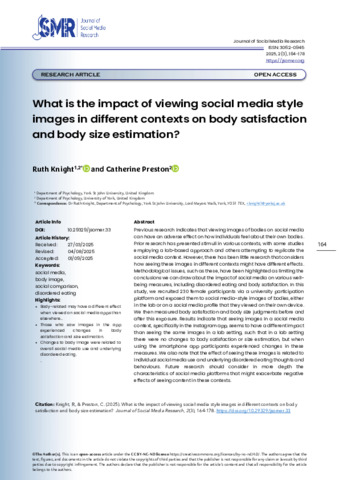 What is the impact of viewing social media style images in different contexts on body satisfaction and body size estimation?