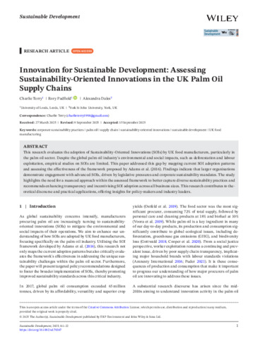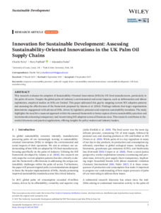 Innovation for Sustainable Development: Assessing Sustainability‐Oriented Innovations in the UK Palm Oil Supply Chains.