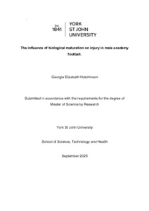 Huthinson, Georgia Elizabeth (2025) The Influence of Biological Maturation on Injury in Male Academy Football. Masters thesis, York St John University.