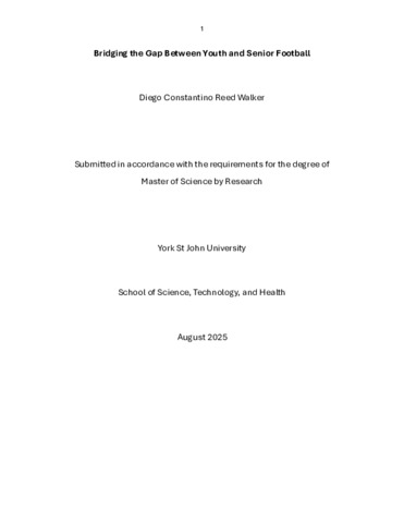 Walker, Diego Constantino Reed (2025) Bridging the Gap Between Youth and Senior Football. Masters thesis, York St John University.