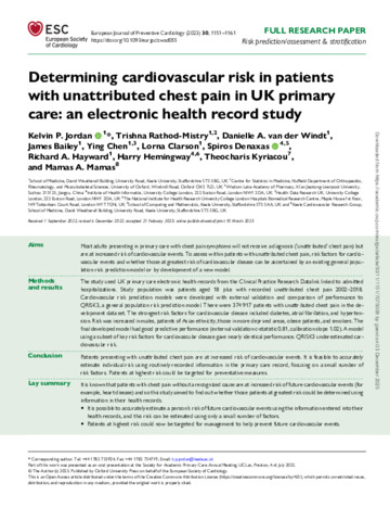 Determining cardiovascular risk in patients with unattributed chest pain in UK primary care: an electronic health record study.