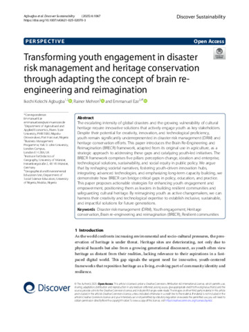 Transforming youth engagement in disaster risk management and heritage conservation through adapting the concept of brain re-engineering and reimagination.