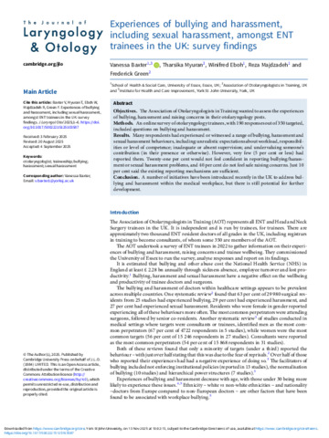 experiences-of-bullying-and-harassment-including-sexual-harassment-amongst-ent-trainees-in-the-uk-survey-findings.pdf - Published Version Available under License Creative Commons Attribution. | Preview |