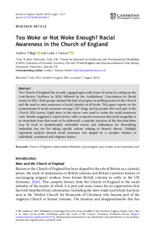 Too Woke or Not Woke Enough? Racial Awareness in the Church of England.