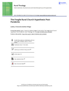The Fragile Rural Church Hypothesis Post-Pandemic.pdf - Published Version Available under License Creative Commons Attribution Non-commercial No Derivatives. | Preview |