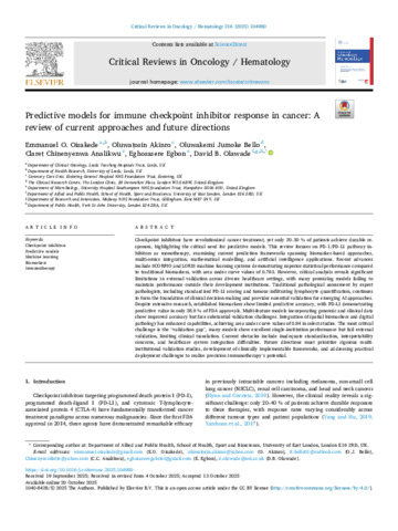 Predictive models for immune checkpoint inhibitor response in cancer: A review of current approaches and future directions.