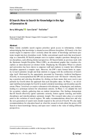 Many widely available search engines prioritise quick access to information, without acknowledging that knowledge is situated across different disciplines. EI Search is the first search engine to empower users’ curiosity about the nature of knowledge and boost epistemic insight into how disciplines work. Unlike conventional search tools that treat knowledge as a monolith, EI Search prompts users to explore complex questions through up to ten disciplines, each offering distinct perspectives. EI Search builds on previous work with the Epistemic Insight Discipline Wheel (DW), an educational graphic that visualises disciplines as interconnected yet distinct fields. Displaying the Discipline Wheel in schools and universities has been shown to empower staff and students to wonder how different disciplines approach a complex topic. However, the DW’s static format limits its capacity to teach epistemic insight and help students to engage with the architecture of knowledge itself. Motivated by the opportunity presented by Generative Artificial Intelligence (GenAI), we reconceptualised the DW into an interactive tool—EI Search—whereby entering a question and selecting disciplines by clicking on them means that users receive pen portraits by GenAI about the approach that each discipline takes. In Phase 1, we developed multifaceted prompts for GenAI to model scholarly knowledge and discipline-specific norms. Phase 2 involved co-creative refinement with educators, technologists, and students, leading to a prototype tailored for educational contexts. In Phase 3, we adapted the tool for secondary schools, gathering data on student interactions. Our findings demonstrate that EI Search effectively ignites epistemic curiosity, fosters agentic learning, and builds disciplinary and interdisciplinary epistemic insight. The research takes place at a pivotal point in the evolution of search engines. We make recommendations about how and why the next generation of search tools should respond to the arrival of GenAI. We also make recommendations for education based on what this research reveals about the power of EI Search to boost knowledge literacy and open users’ minds to the value of taking different perspectives.