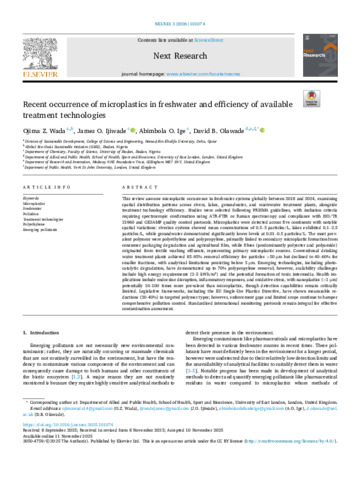 Recent Occurrence of Microplastics in Freshwater and Efficiency of Available Treatment Technologies- A Review.