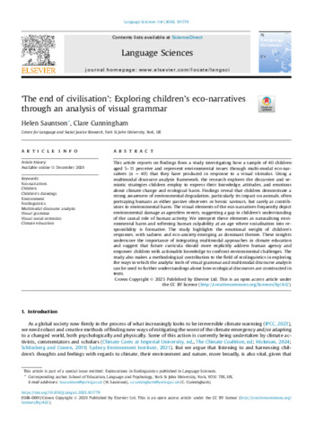 ‘The end of civilisation’: Exploring children’s eco-narratives through an analysis of visual grammar.