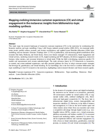 Mapping evolving immersive customer experiences (CX) and virtual engagement in the metaverse: insights from bibliometrics-topic modelling synthesis.