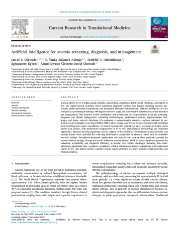 Artificial Intelligence for Anemia Screening, Diagnosis, and Management: A Narrative Review.