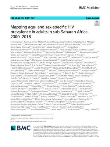 Mapping age- and sex-specific HIV prevalence in adults in sub-Saharan Africa, 2000–2018.