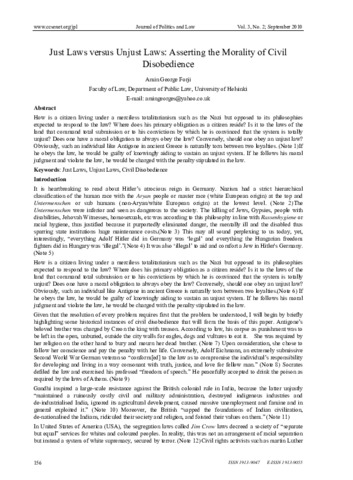 Just Laws versus Unjust Laws: Asserting the Morality of Civil Disobedience.