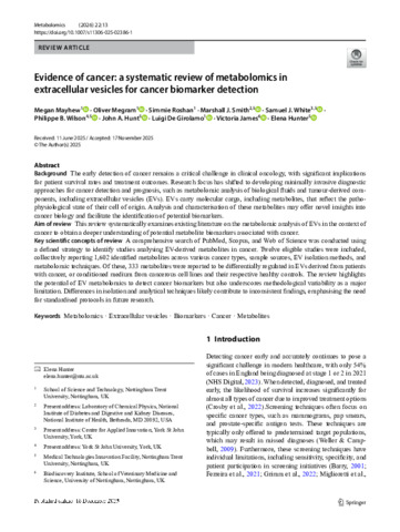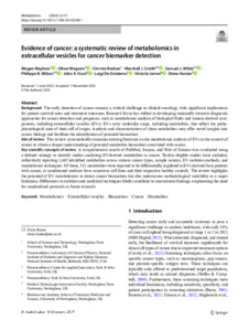 Evidence of cancer: a systematic review of metabolomics in extracellular vesicles for cancer biomarker detection.