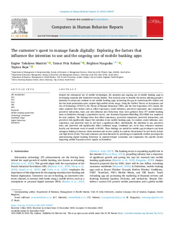 The customer's quest to manage funds digitally: Exploring the factors that influence the intention to use and the ongoing use of mobile banking apps.