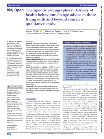 Therapeutic radiographers’ delivery of health behaviour change advice to those living with and beyond cancer: a qualitative study.