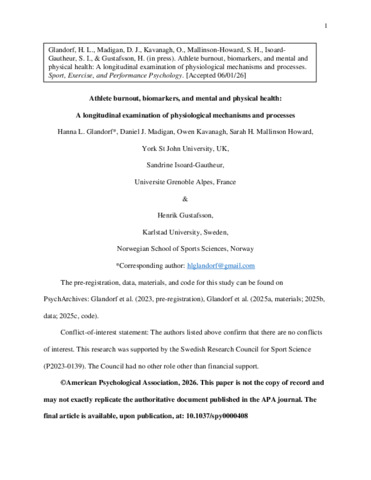 Athlete burnout, biomarkers, and mental and physical health: A longitudinal examination of physiological mechanisms and processes.