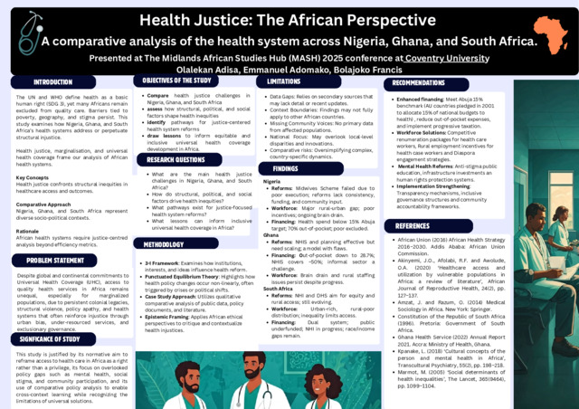 Health Justice in African Health Systems: A comparative analysis of health justice across Nigeria, Ghana, and South Africa.