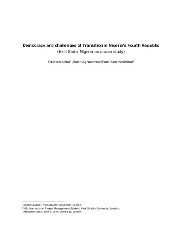 Democracy and challenges of transition in Nigeria's fourth Republic - Ekiti State, Nigeria1 (2).pdf - Presentation | Preview |