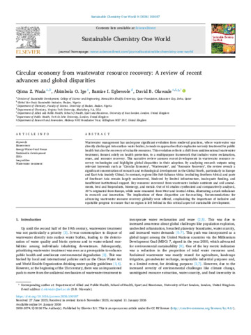 Circular Economy from Wastewater Resource Recovery: A Review of Recent Advances and Global Disparities.