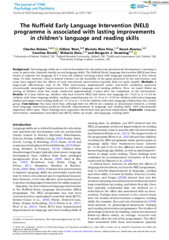 The Nuffield Early Language Intervention (NELI) programme is associated with lasting improvements in children's language and reading skills.