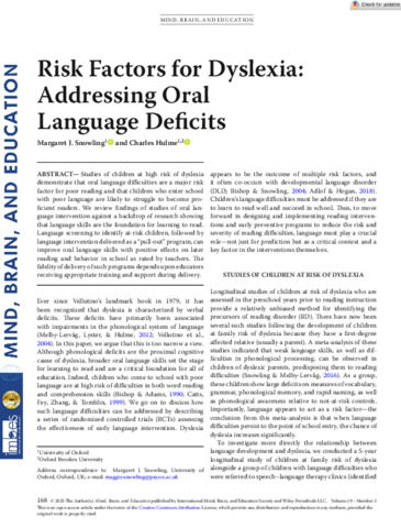 Mind Brain and Education - 2025 - Snowling - Risk Factors for Dyslexia Addressing Oral Language Deficits.pdf - Published Version Available under License Creative Commons Attribution. | Preview |