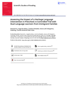 Assessing the Impact of a Heritage Language Intervention in Preschool A Controlled Trial with Dual Language Learners from Immigrant Families.pdf - Published Version Available under License Creative Commons Attribution Non-commercial No Derivatives. | Preview |