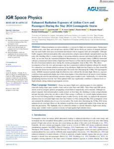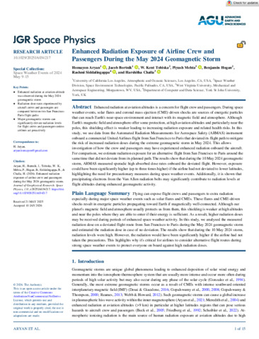 JGR Space Physics - 2026 - Aryan - Enhanced Radiation Exposure of Airline Crew and Passengers During the May 2024.pdf - Published Version Available under License Creative Commons Attribution Non-commercial No Derivatives. | Preview |
