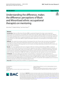Atwal, Anita, McKay, Elizabeth and Sriram, Vimal (2023) Understanding the difference, makes the difference: perceptions of Black and Minoritised ethnic occupational therapists on mentoring. BMC Health Services Research, 23 (1).