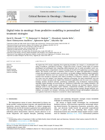 Digital Twins in Oncology: From Predictive Modelling to Personalised Treatment Strategies.
