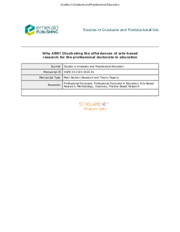 “Why ABR? Illustrating the affordances of arts-based research for the professional doctorate in education”.
