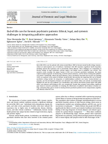 End-of-life care for forensic psychiatric patients: Ethical, legal, and systemic challenges in integrating palliative approaches.